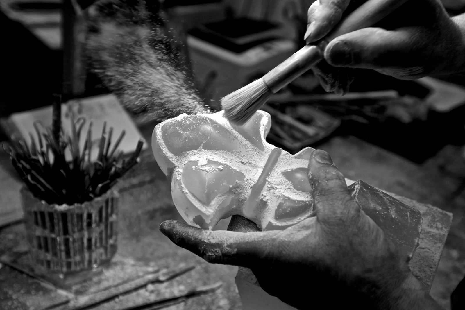 Objet unique, chaque carafe Classique LOUIS XIII est taillée à la main par une équipe de 11 artisans qualifiés travaillant pour les plus grandes cristalleries européennes. La complexité de la tâche requiert savoir-faire et intuition à chaque étape de la fabrication : les maîtres cristalliers travaillent de concert pour souffler la carafe lorsque le cristal atteint la température idéale, façonnant chacune des fines dentelles à la main.
